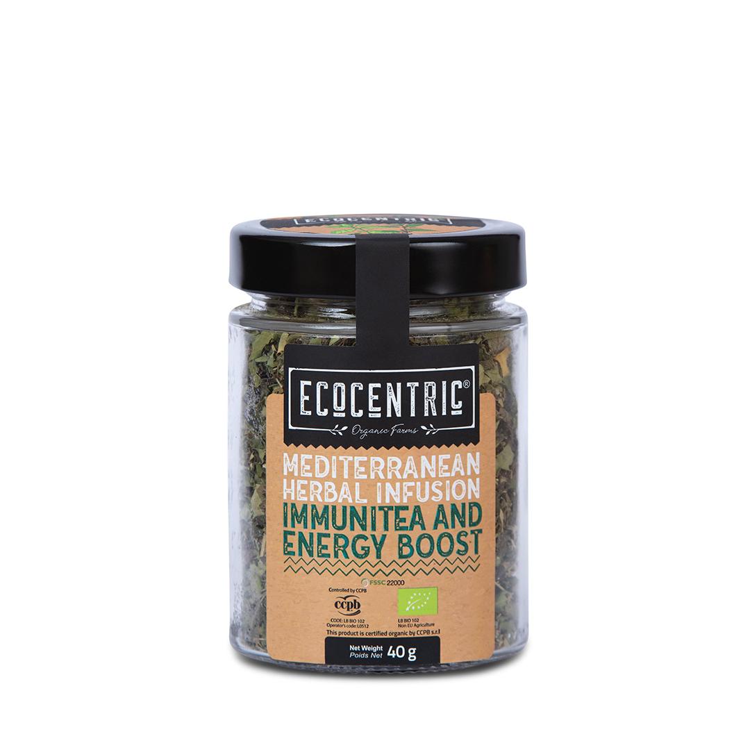 Boost your immunity and energy naturally with our organic Mediterranean herbal infusion tea. This carefully crafted blend includes beneficial ingredients like Lemon Balm, Moringa, Stinging Nettle, and Yerba Mate, known for their powerful health benefits.